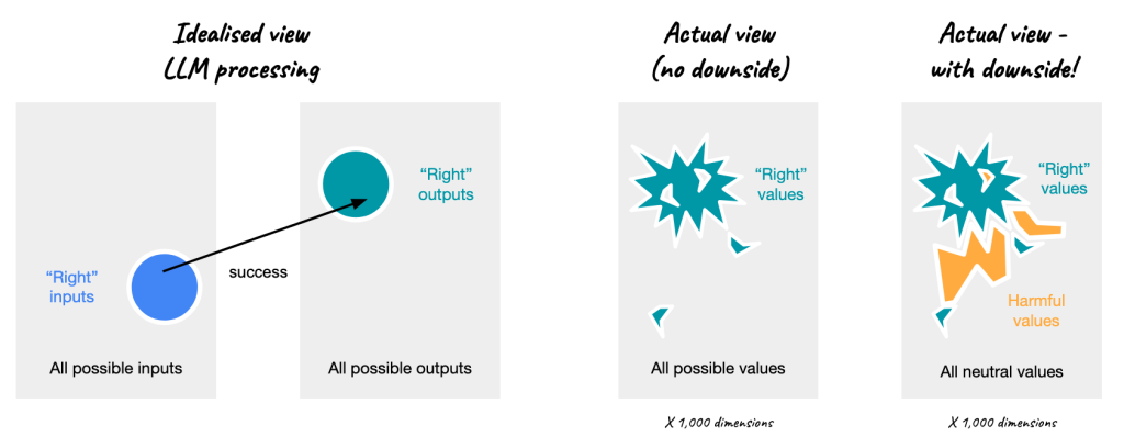 It’s worth taking a moment to understand the vastness of the input and output spaces of LLMs, either in the surface form of tokens or the latent semantic space.
